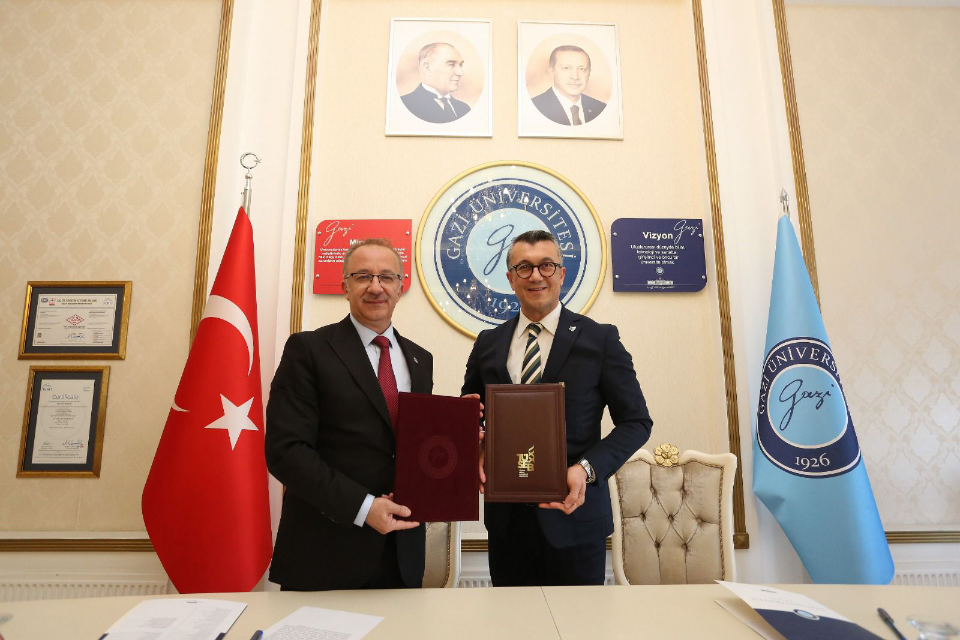 TÜSEB Başkanı Prof. Dr. Ümit Kervan ile Gazi Üniversitesi Rektörü Prof. Dr. Uğur Ünal’ın katılımıyla gerçekleştirilen protokol töreninde, iki kurum arasındaki iş birliğinin geliştirilmesine yönelik önemli bir adım atıldı.