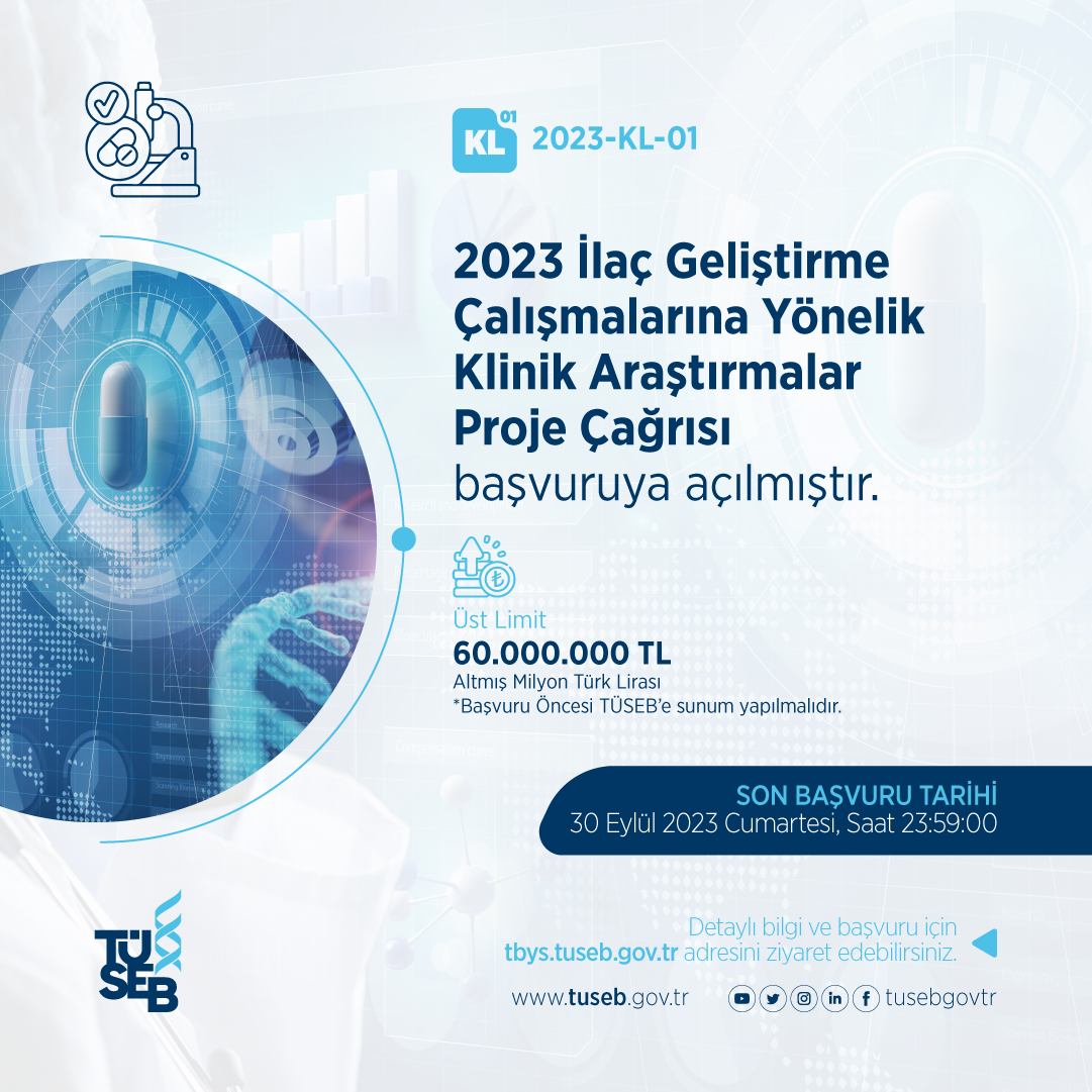 2023 İlaç Geliştirme Çalışmalarına Yönelik Klinik Araştırmalar Proje Çağrısı başvuruya açılmıştır.