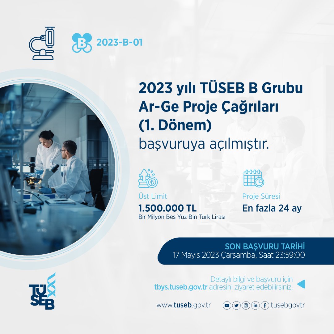 2023 yılı TÜSEB B Grubu Ar-Ge Proje Çağrıları (1. Dönem) Başvuruya Açılmıştır