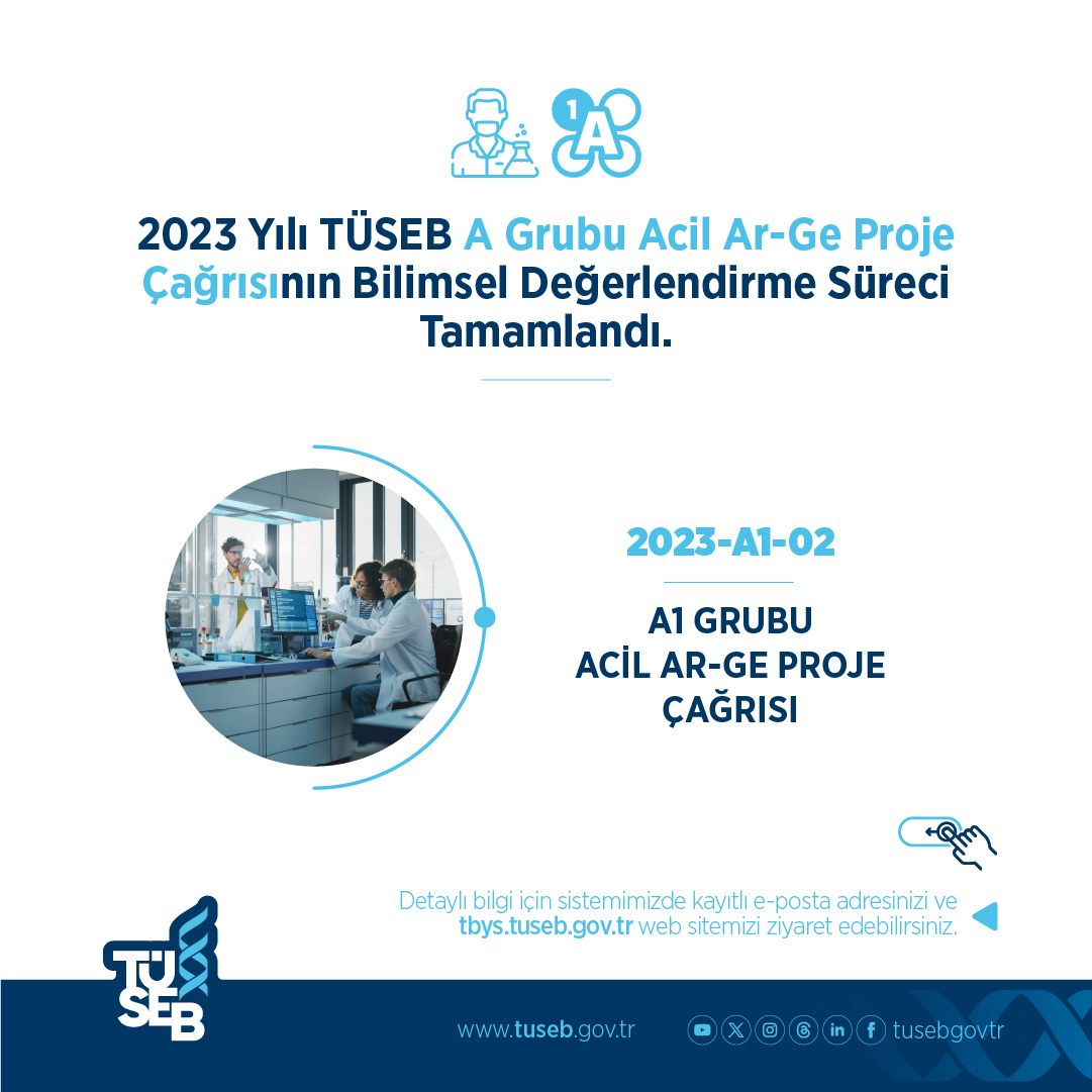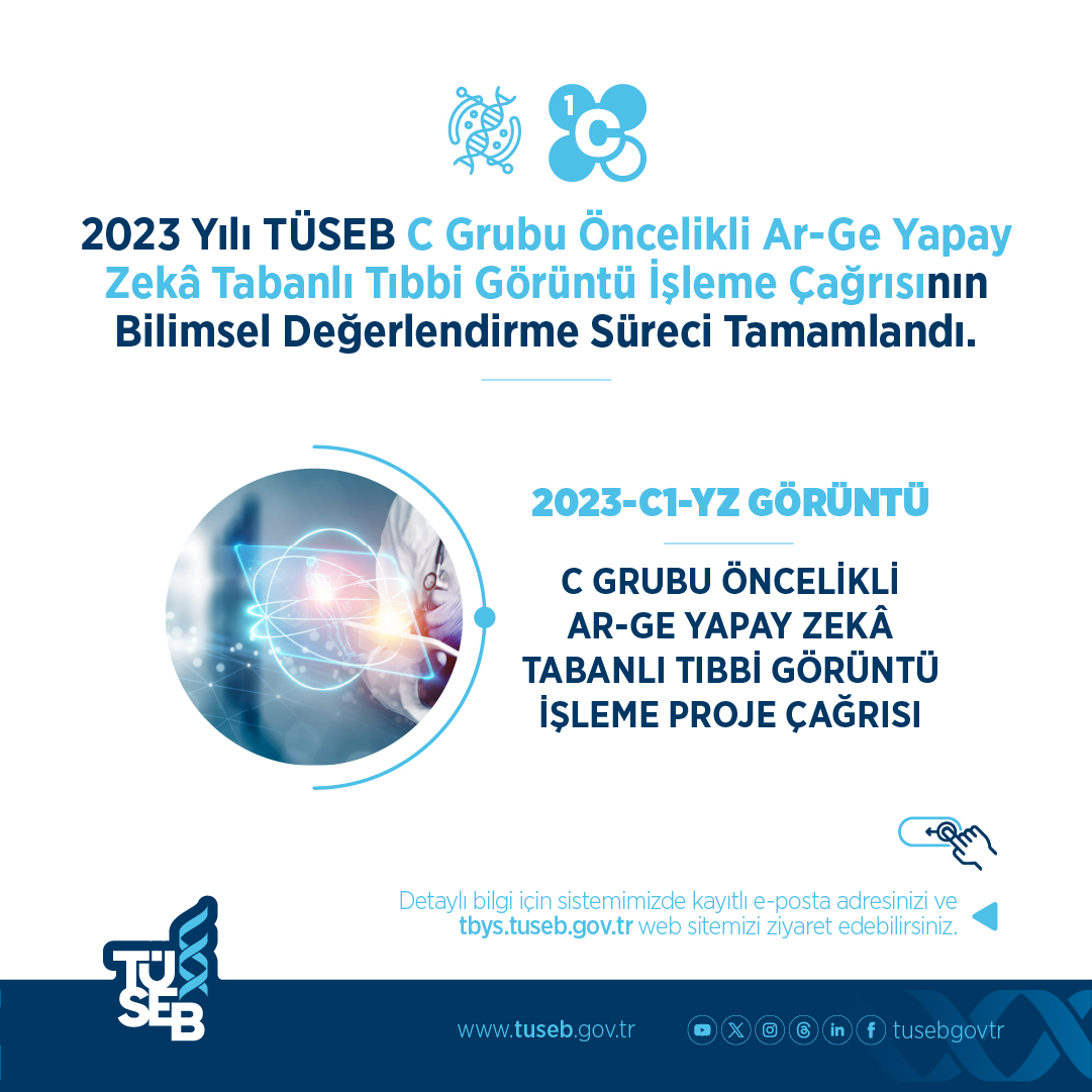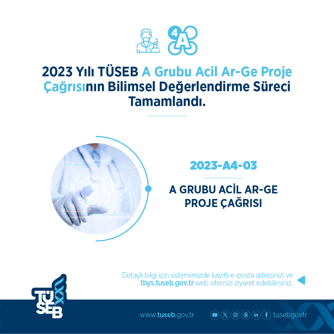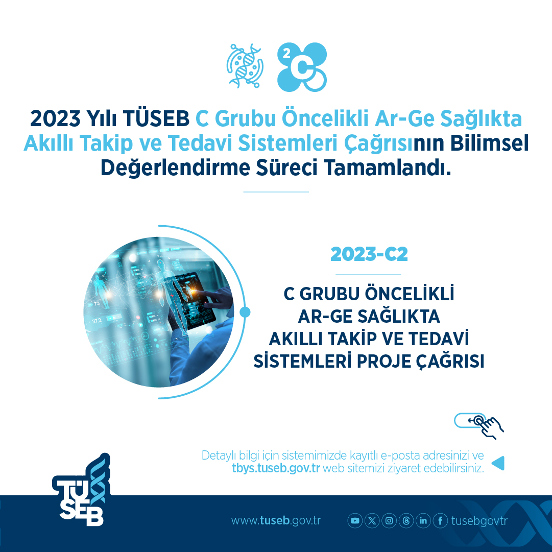 2024 yılının ilk çeyreğinde; 2023-B-02 Grubu Ar-Ge Proje Çağrısı, 2023-A4-03 A Grubu Acil Ar-Ge Proje Çağrısı, 2023-A1-02 Acil Ar-Ge Proje Çağrısı, 2023-C2 Öncelikli Ar-Ge Sağlıkta Akıllı Takip ve Tedavi Sistemleri Proje Çağrısı, 2023-C1-YZ Görüntü Öncelikli Ar-Ge Yapay Zekâ Tabanlı Tıbbi Görüntü İşleme Proje Çağrısı ve 2023-C2-YZ Protez Öncelikli Ar-Ge Yapay Zekâ Tabanlı Protez Geliştirme Proje Çağrısı’nın bilimsel değerlendirme süreçleri tamamlanmıştır.