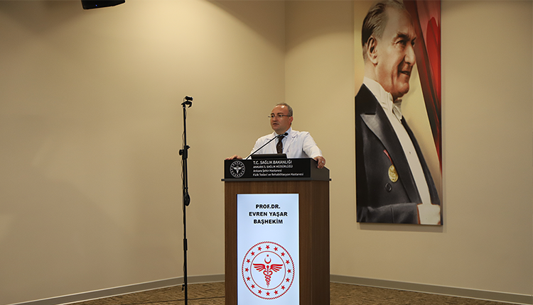 Ankara Şehir Hastanesi’nde; mühendisler, FTR hekimleri, fizyoterapistler, ergoterapistler, dil – konuşma terapistlerine yönelik düzenlenen ve online olarak da takip edilebilen eğitimin dördüncü oturumunda Fizik Tedavi ve Rehabilitasyon Hastanesi Başhekimi Prof. Dr. Evren Yaşar ““Tıbbi Rehabilitasyonda Fonksiyonel İhtiyaçlar - Genel Bilgilendirme” başlıklı sunumunu gerçekleştirdi.