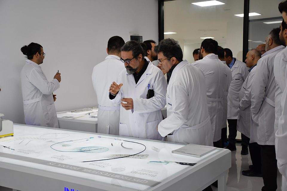 Heyet, tıbbi cihaz ve malzemelerin üretim aşamalarını gözlemleyerek, kalite kontrol süreçleri ve yenilikçi çözümler üzerine bilgi alışverişinde bulunarak, bu kritik tıbbi ürünün üretim süreci, teknik altyapısı ve geliştirme potansiyeli üzerine detaylı incelemeler yaptı.