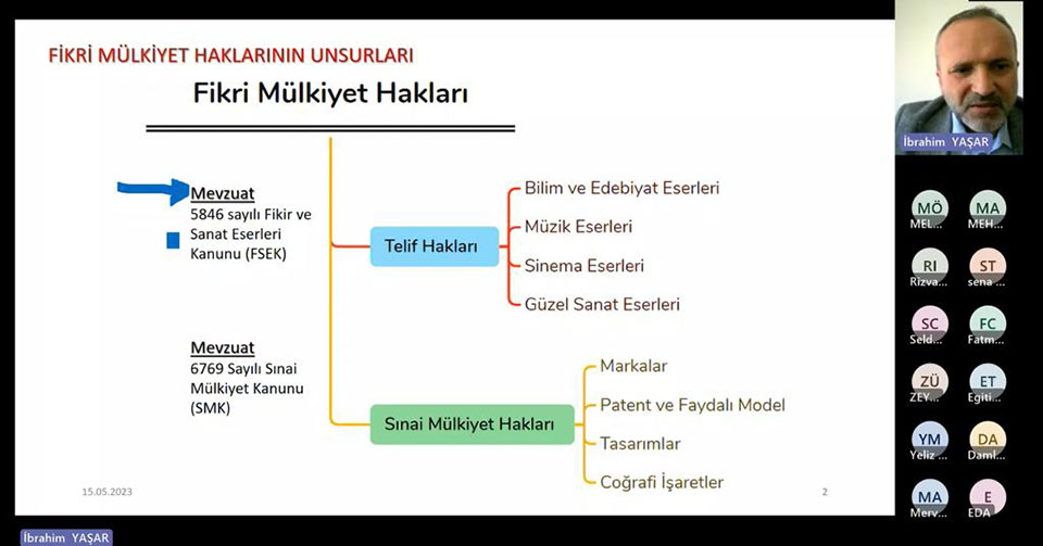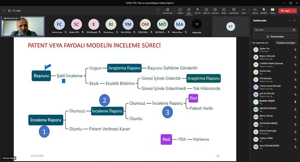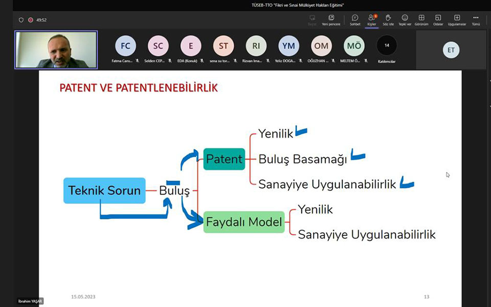 TÜSEB Teknoloji Transfer Ofisi tarafından “TÜSEB Sağlıkta Teknoloji Dönüşümü Eğitim Serileri” düzenlenmektedir. Bu eğitim serilerinin üçüncüsü olan “Fikri ve Sınai Mülkiyet Hakları Eğitimi” Ostim Teknik Üniversitesi akademisyenlerinden Dr. Öğr. Üyesi İbrahim YAŞAR tarafından 15 Mayıs 2023 tarihinde gerçekleştirildi.
