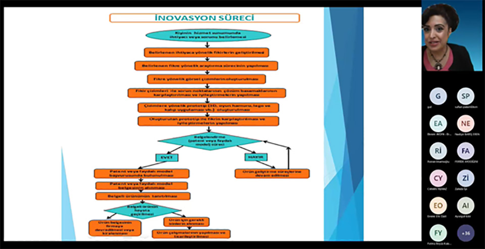 Açılış konuşması sonrasında, Doç. Dr. Yeliz DOĞAN MERİH tarafından “Sağlıkta İnovasyon ve İnovatif Ürün Geliştirme Eğitimi” gerçekleştirildi. Eğitimde, “Sağlıkta Teknoloji Dönüşümü Eğitim Serileri” hakkında bilgilendirme yapıldı. Ayrıca sağlıkta inovasyonun yeri ve önemi, sağlıkta inovatif ürün örnekleri, inovatif fikir geliştirme ve inovasyon süreç basamakları konularına yer verildi.