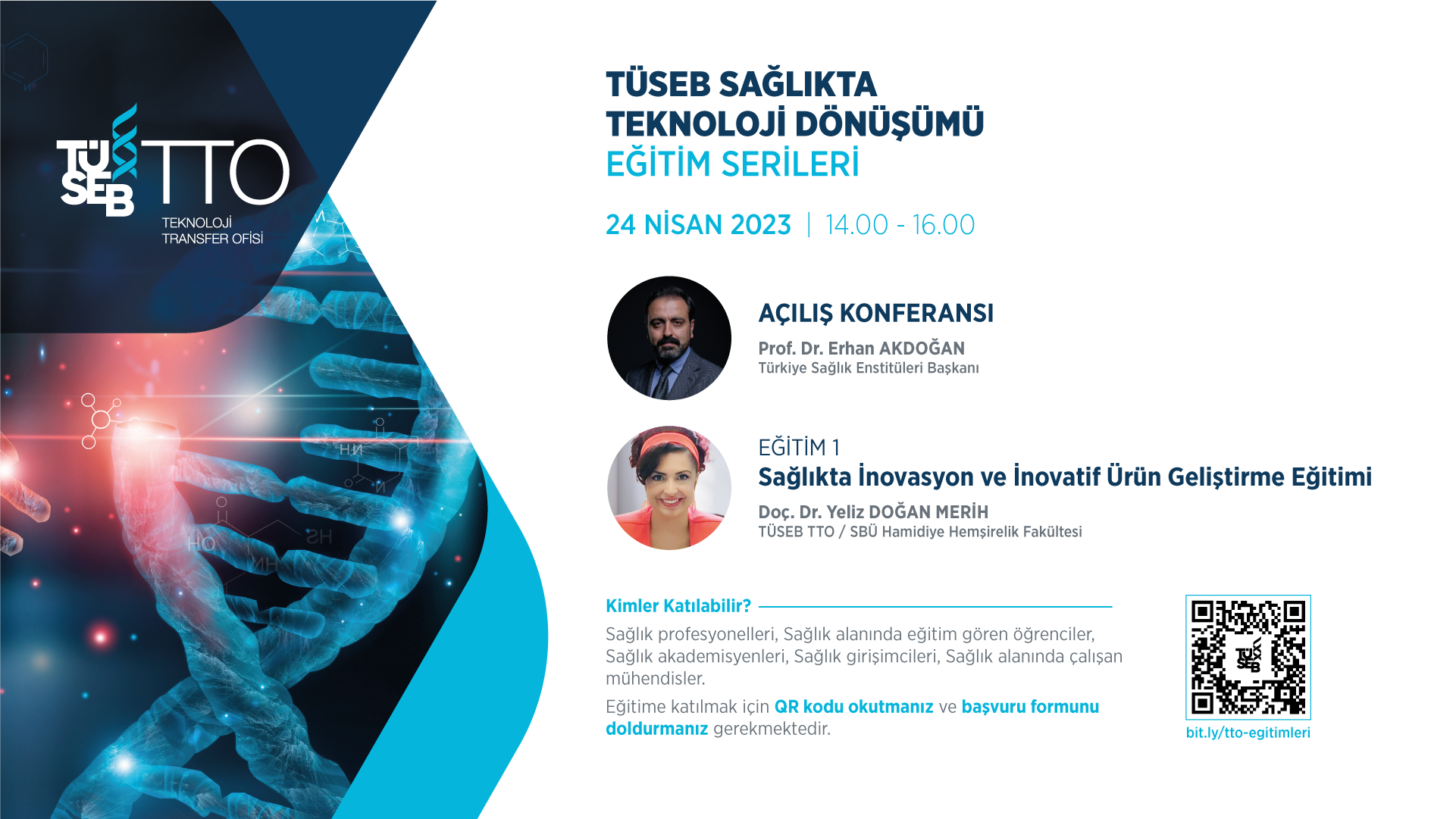 Eğitim serilerinin ilki olan “Sağlıkta İnovasyon ve İnovatif Ürün Geliştirme Eğitimi” 24 Nisan Pazartesi günü saat 14:00’da gerçekleştirilecektir. Etkinliğe katılmak için başvuru formunun doldurulması gerekmektedir.