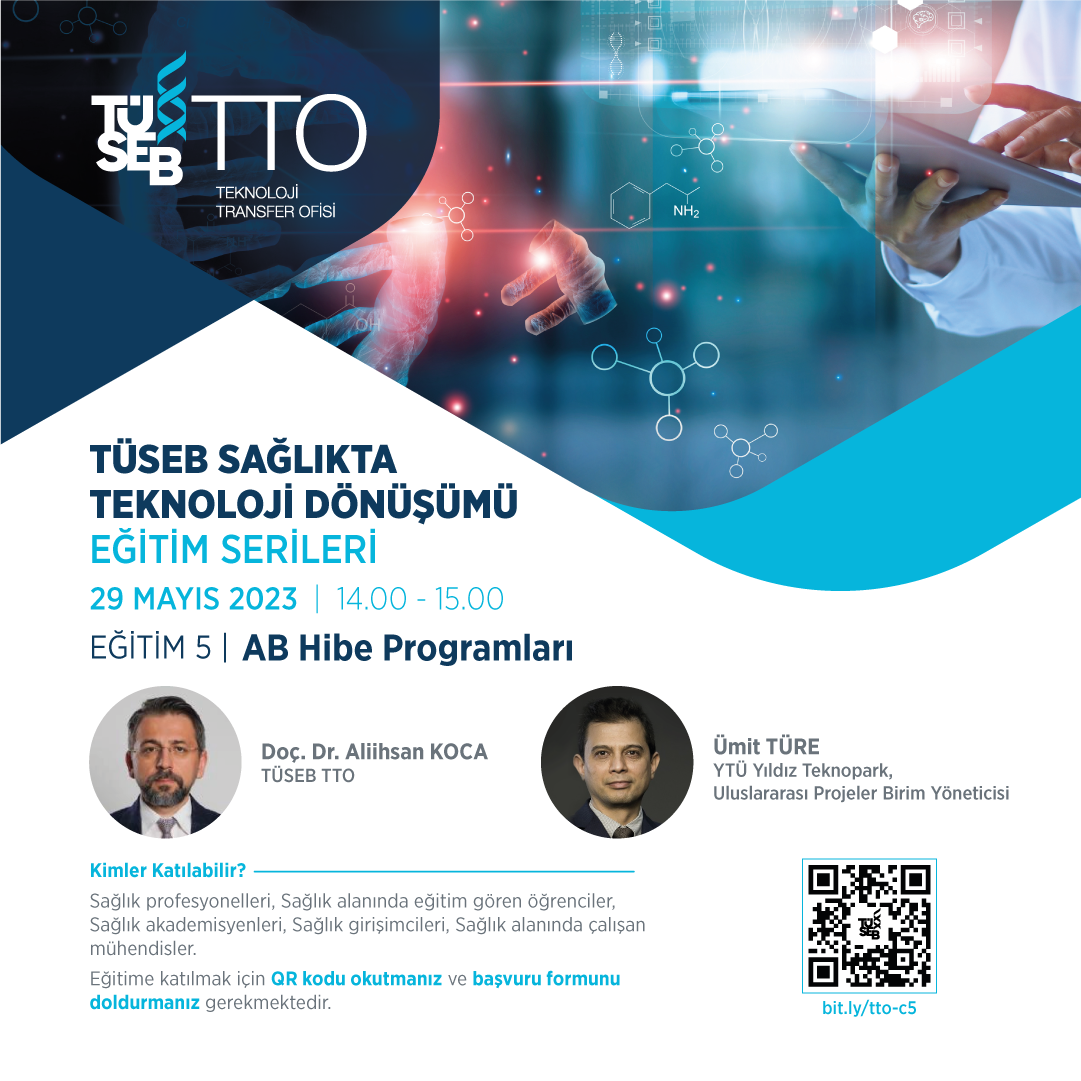 TÜSEB Teknoloji Transfer Ofisi Tarafından “Sağlıkta Teknoloji Dönüşümü Eğitim Serileri” Kapsamında Çevrimiçi “AB Hibe Programları” Eğitimi Düzenlenecektir