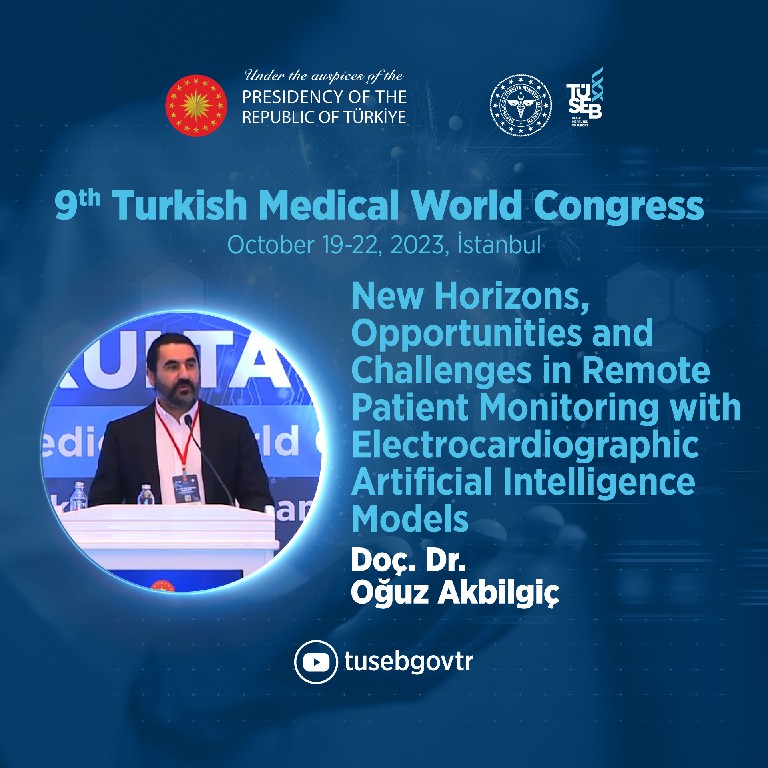 Click here to watch the presentation titled "New Horizons, Opportunities and Challenges in Remote Patient Monitoring with Electrocardiographic Artificial Intelligence Models" by Assoc. Prof. Oğuz AKBILGİÇ from Wake Forest School of Medicine.
