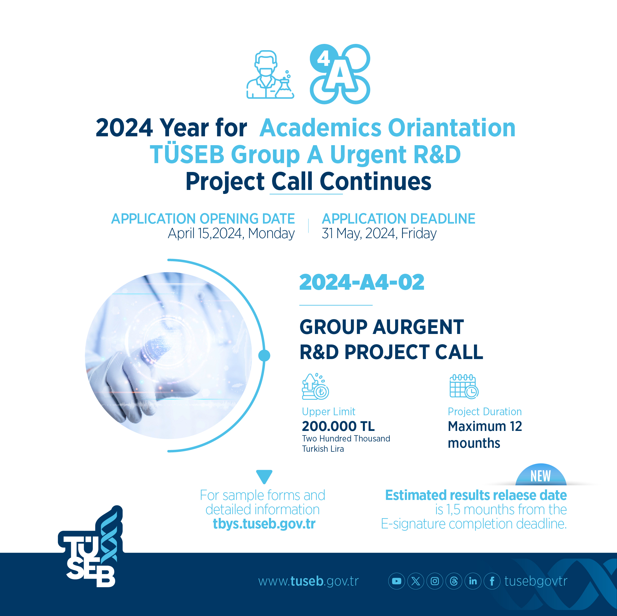 2024 TÜSEB Group A Emergency R&D Project A4-02 Calls Applications Continues