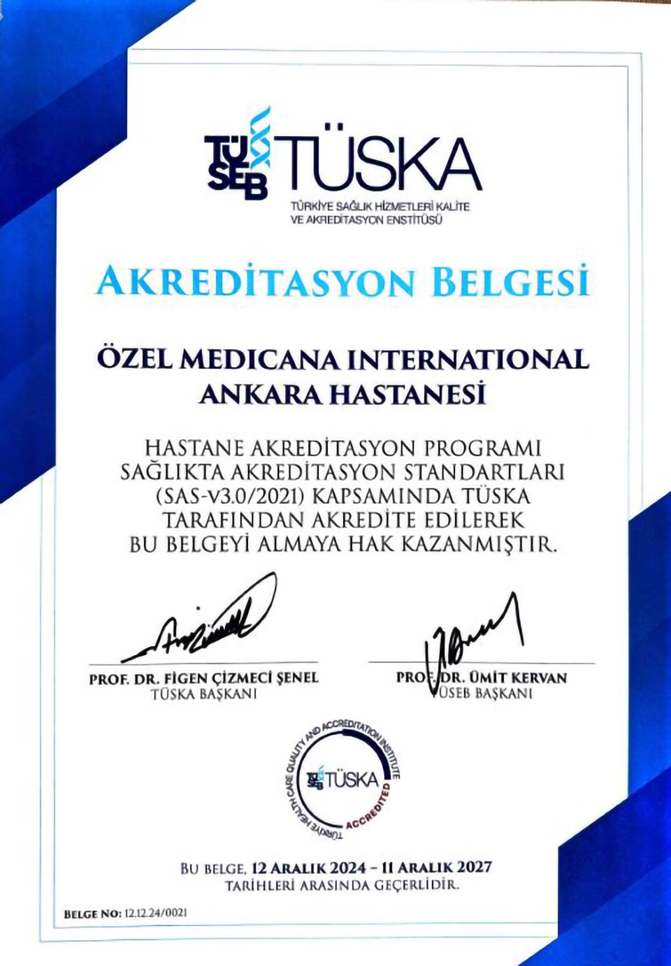 Medicana International Ankara Hospital Accredited For The Second Time By TÜSEB-TÜSKA (Türkiye Health Care Quality And Accreditation Institute)