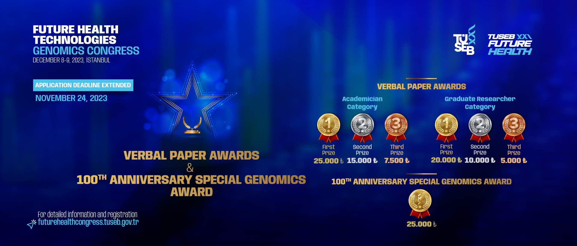 Oral Presentation Awards and the 100th Anniversary Special Genomics Award will be presented at the Future Health Technologies Genomics Congress, organized within the scope of TÜSEB.