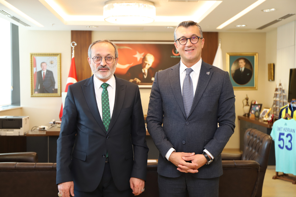 On August 27, 2025, President of Health Institutes of Türkiye (TÜSEB), Prof. Dr. Ümit Kervan, hosted the Rector of Bingöl University, Prof. Dr. Erdal Çelik, and his accompanying delegation at his office. The meeting, which was also attended by Assoc. Prof. Dr. Zeliha Özdemir Köken, Head of TÜSEB Technology Transfer Office, and Assoc. Prof. Dr. Aziz Küçük, Acting Secretary-General, addressed topics concerning public-university collaboration.