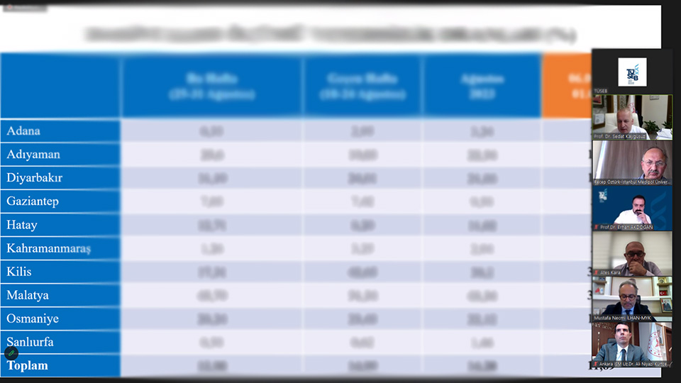 The Post-Earthquake Public Health Commission of the Ministry of Health of the Republic of Türkiye held the continuation of its meetings online on 04.09.2023 under the chairmanship of Prof. Dr. Erhan AKDOĞAN, President of TÜSEB.