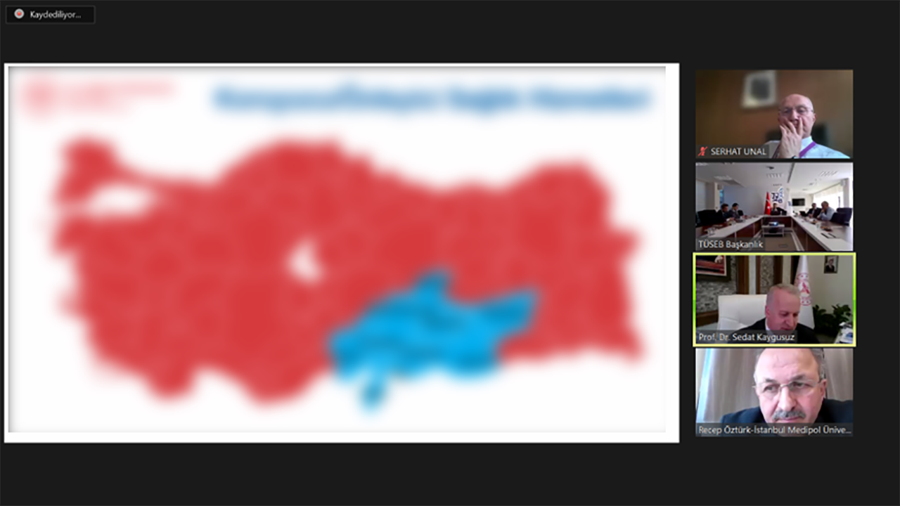 Headed by President of TÜSEB Prof. Erhan AKDOĞAN, the meeting on Ministry of Health Post-Earthquake Public Health Commission was attended by commission members including Director of TÜSEB Türkiye Vaccine Institute Prof. Ateş KARA, Dean of Medical Faculty of Gazi University Prof. Mustafa Necmi İLHAN, Assistant to Rector of Hacettepe University Prof. Serhat ÜNAL, Faculty Member of Istanbul Medipol University Prof. Recep ÖZTÜRK, and also both Provincial Health Director of Ankara Spc. Ali Niyazi KURTCEBE, MD and Director General of Public Health, Ministry of Health Prof. Sedat KAYGUSUZ, who have just joined to the commission. The hybrid meeting was taken place at TÜSEB Aziz Sancar Research Center.