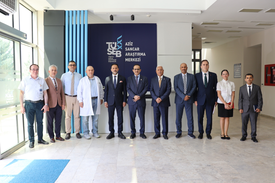 On July 28, 2025, the Minister of Health of Yemen, Dr. Qasem Mohammed BUHEYB, and the accompanying delegation paid a visit to TÜSEB Aziz Sancar Research Center (ASAM). Participants of the visit included H.E. Mohamed Saleh Ahmed TURIQ, Ambassador of Yemen to Ankara; Dr. Mohamed KADRI, Health Attaché of the Embassy of Yemen; Dr. Aziz Alper BİTEN, Director General for EU and Foreign Affairs of the Republic of Türkiye Ministry of Health; Dr. Celal Orhun ECEMİŞ, Head of the Americas, Africa and Middle East Department; Aras BAYRAM, EU Expert at the same department; Prof. Dr. Ateş KARA, Head of TÜSEB Türkiye Vaccine Institute; Prof. Dr. Burak CİVELEK, Head of TÜSEB Türkiye Cancer Institute; Engin UÇAR, Administrative Affairs Officer at ASAM; Dr. Adil TEMEL, Information Systems Coordinator; Sezin ÜNAL, Administrative Staff at TÜSEB Foreign Affairs Department; and Halil İbrahim KILIÇ, Data Processing and Control Officer at Türkiye Cancer Institute.