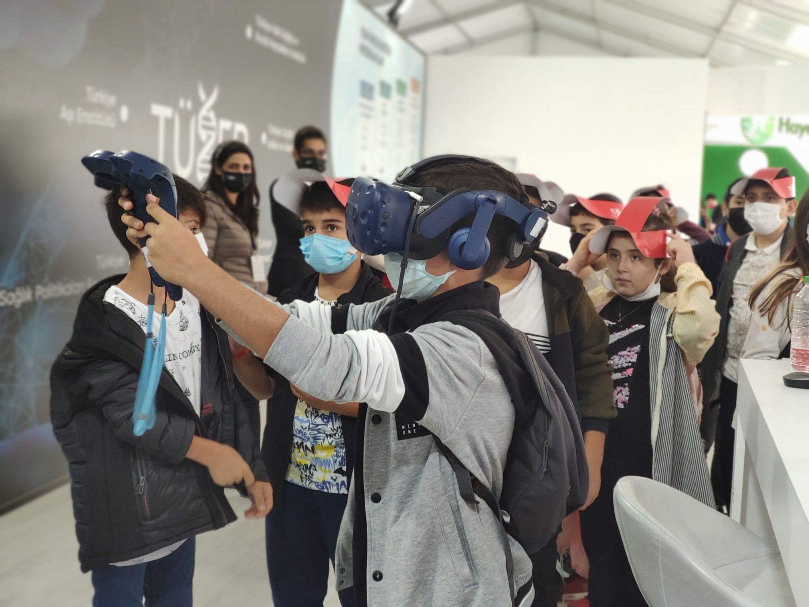 The kids and students who show great interest on TUSEB booth at TEKNOFEST, learn the lab material and play scientific games with virtual realty.