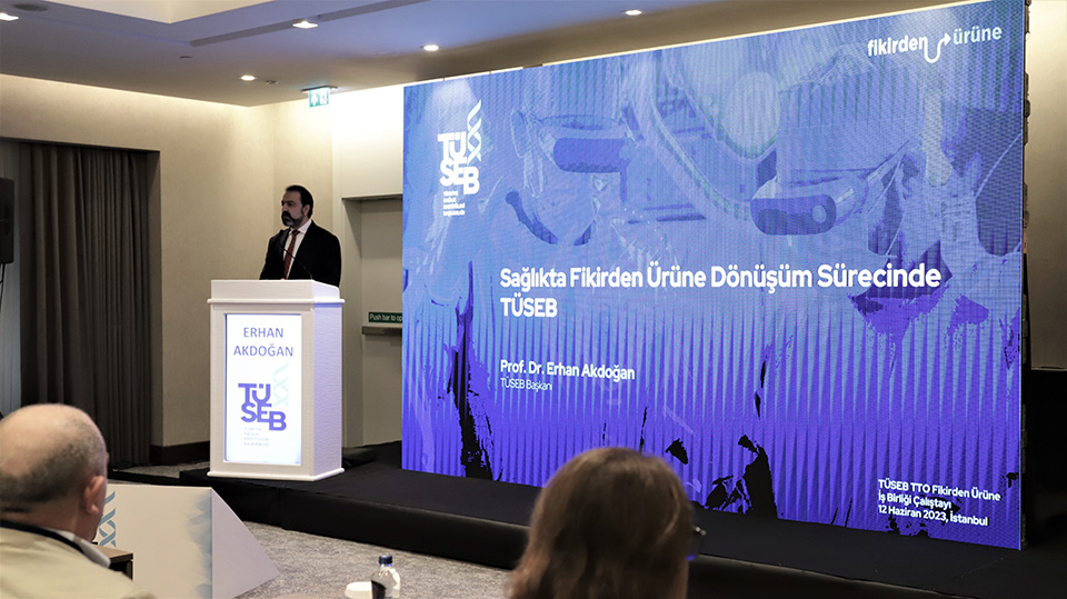Being held on 12 June 2023, in İstanbul, “TÜSEB TTO Workshop on Cooperation from Idea to Product” was attended by President of TÜSEB Prof. Erhan AKDOĞAN, Assistant to TÜSEB President and Director of Türkiye Biotechnology Institute Prof. Rabia ÇAKIR KOÇ, Assistant to TÜSEB President and Director of Türkiye Health Data Research and Artificial Intelligence Applications Institute Prof. Songül VARLI, Director of Türkiye Cancer Institute Assoc. Prof. Burcu YÜCEL, Director of Türkiye Vaccine Institute Prof. Ateş KARA, Head of TÜSEB Project Management and Support Department Batuhan YEŞİLYURT, Manager of TÜSEB Technology Transfer Office Dr. Lec. Rizvan İMAMOĞLU, and TÜSEB TTO Lecturers Assoc. Prof. Yeliz DOĞAN MERİH, Assoc. Prof. Aliihsan KOCA, Dr. Lec. Mehmet Emin AKTAN.