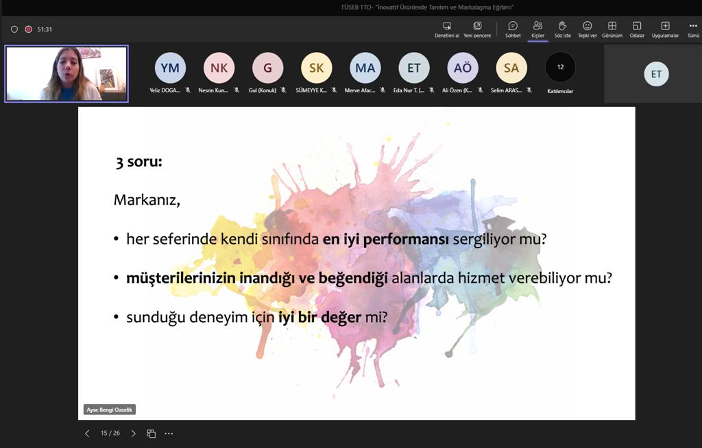 Within the scope of “Training Series on Technology Transformation in Health” by TÜSEB Technology Transfer Office, training on “Promotion and Branding in Innovative Products” was held online.