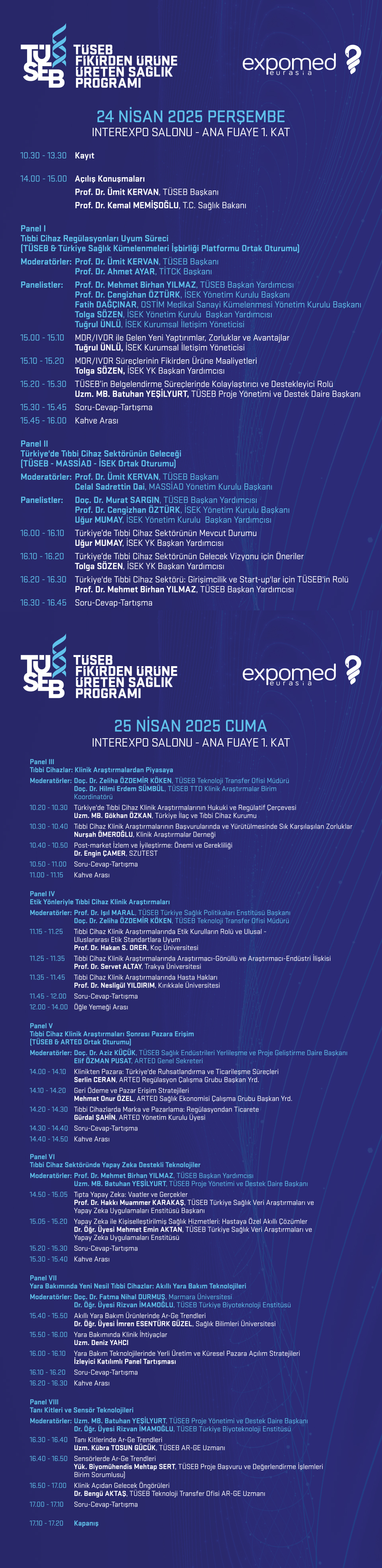 24-26 Nisan tarihleri arasında düzenlenen EXPOMED Eurasia 2025 Fuarı kapsamında, Türkiye Sağlık Enstitüleri Başkanlığı (TÜSEB) tarafından yürütülen “Fikirden Ürüne Üreten Sağlık Programı”, sağlık sektörünün farklı alanlarından profesyonelleri bir araya getiren panel serileri ve iş birliği görüşmeleriyle dikkat çekti.